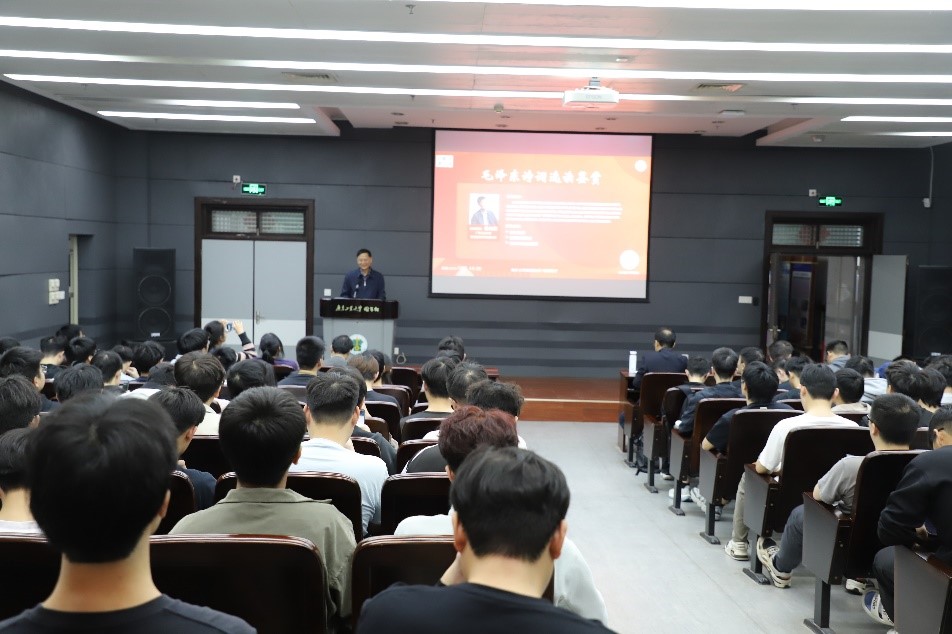 徐向东系统梳理了毛泽东诗词创作的历史背景、思想内涵及其所折射的时代变迁与心路历程,通过“意、象、声”三重维度深入解析《沁园春·雪》《七律·长征》等经典篇目。讲座创新采用“诗词解析+艺术演绎”形式,辅以深情演唱带领师生感受平仄韵律中的革命豪情,在历史语境中领悟“为人民谋永福”的博大胸怀,以诗词为媒共话红色初心。