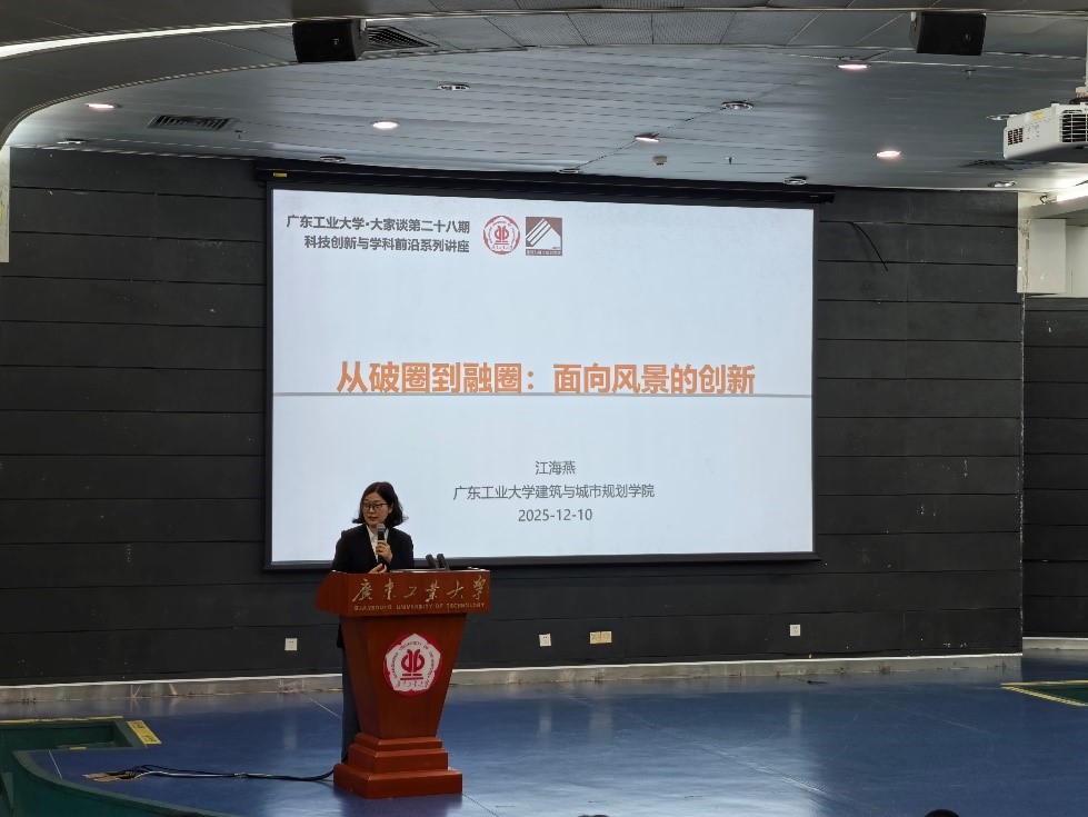 12月10日,“大家谈”第二十八期暨“科技创新与学科前沿”系列讲座在大学城校区大讲堂圆弧报告厅举办。本次讲座特邀我校建筑与城市规划学院副院长、城乡融合发展研究院执行院长、景观规划与生态修复研究中心主任江海燕教授以《从破圈到融圈:面向风景的创新》为题主讲,图书馆馆长房亚明及师生共计300余人参加。