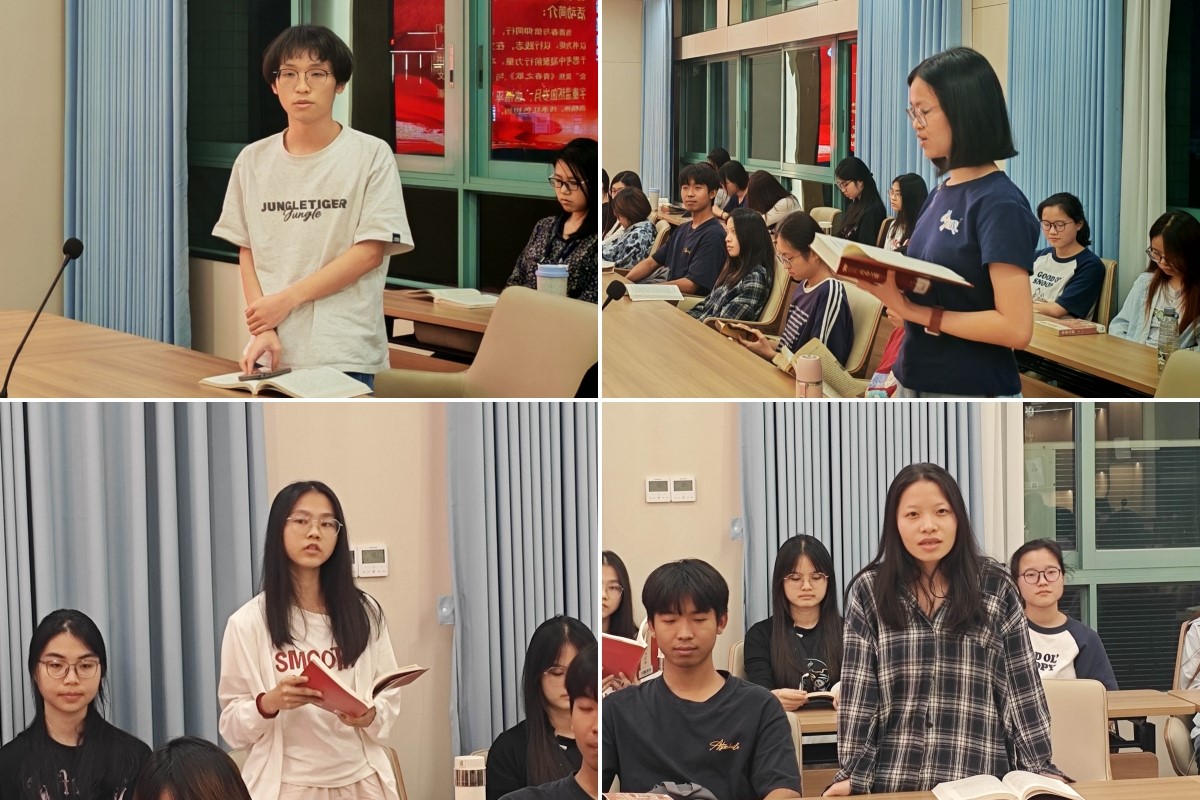 读书分享环节,两位同学精心准备、各展风采,为大家带来了各具特色的经典解读。林丽静同学以 “林道静的蜕变——革命的成长” 为切入点,分享红色经典《青春之歌》,讲述主人公从反抗包办婚姻的地主家少女,到在革命浪潮中历经思想觉醒、与旧我决裂,最终成长为坚定共产主义战士的历程。她结合自身法学专业的学习思考,号召青年学子以革命先辈为精神标杆,将个人专业发展与社会公平正义的追求相融,以扎实的专业素养践行时代使命,用法治力量守护社会公序,让青春在服务社会、践行信仰的实践中绽放价值。